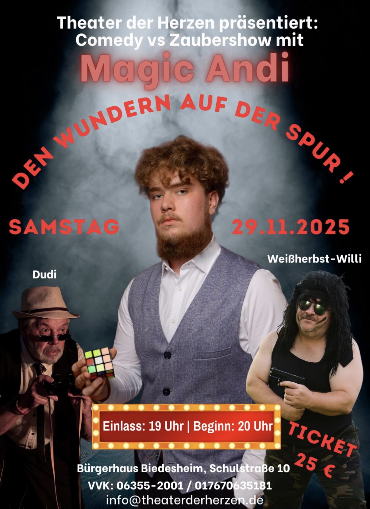 In der Show „Den Wundern auf der Spur“ tritt Magic Andi mit seiner neuen Zaubershow auf. Die Gäste Weißherbst-Willi (Stefan Beyer) und Dudi (Günter Dudenhöffer) versuchen dabei, seine Zauberfähigkeiten kritisch zu hinterfragen. Gemeinsam entsteht ein spannendes Duell zwischen Magie und Comedy, bei dem das Publikum atemberaubende Illusionen, viel Humor und überraschende Momente erlebt.